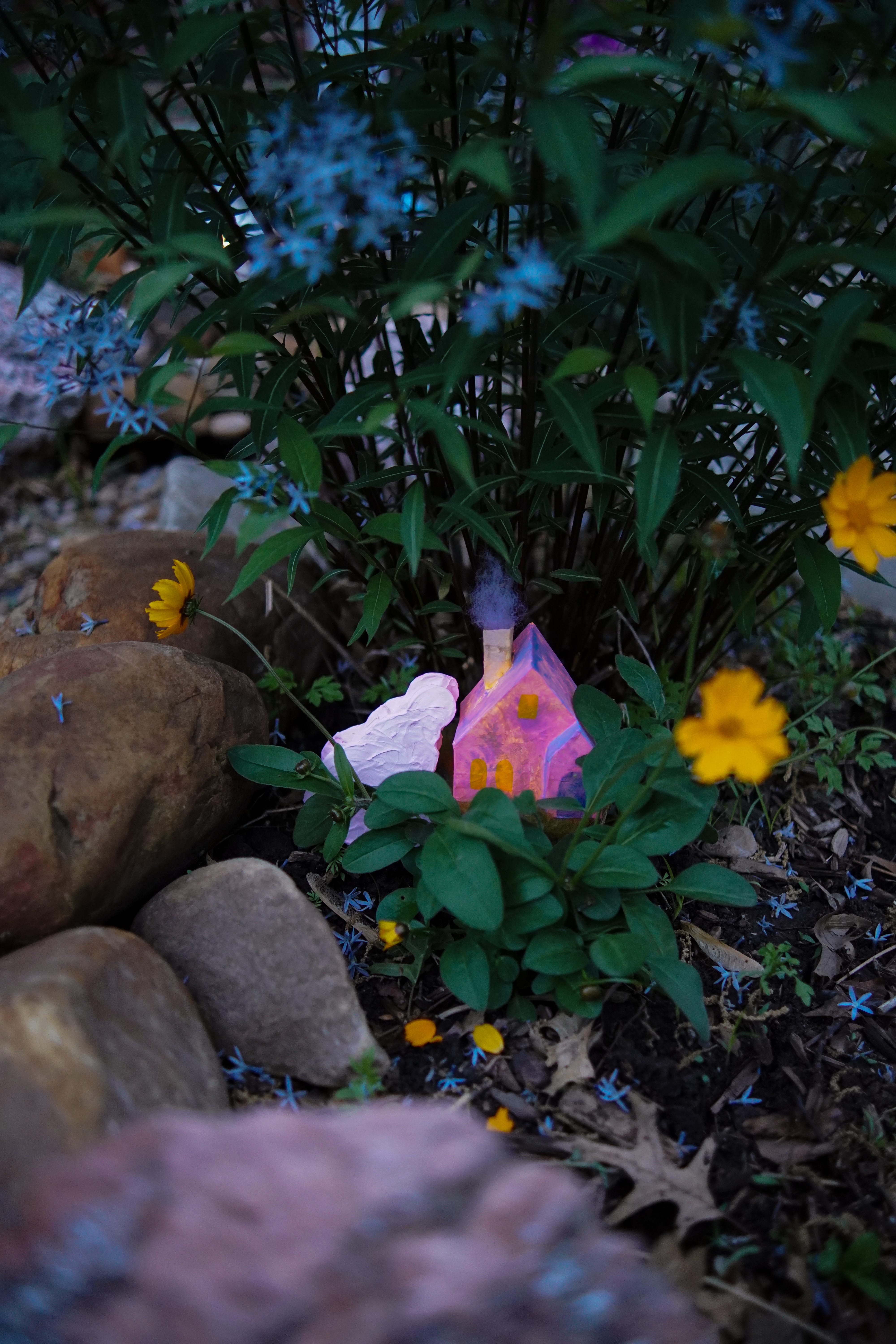 Two more days until Summer Break begins for my youngest and his heart is ready for it’s arrival. We’ve been cleaning and setting up all toys involving water in anticipation and building out a dry rock bed to drain them when they are done for the day. The water will soak in slow and steady and nourish the plants through the summer heat, and be a place for a bird or butterfly to snag a drink before it soaks in all the way.